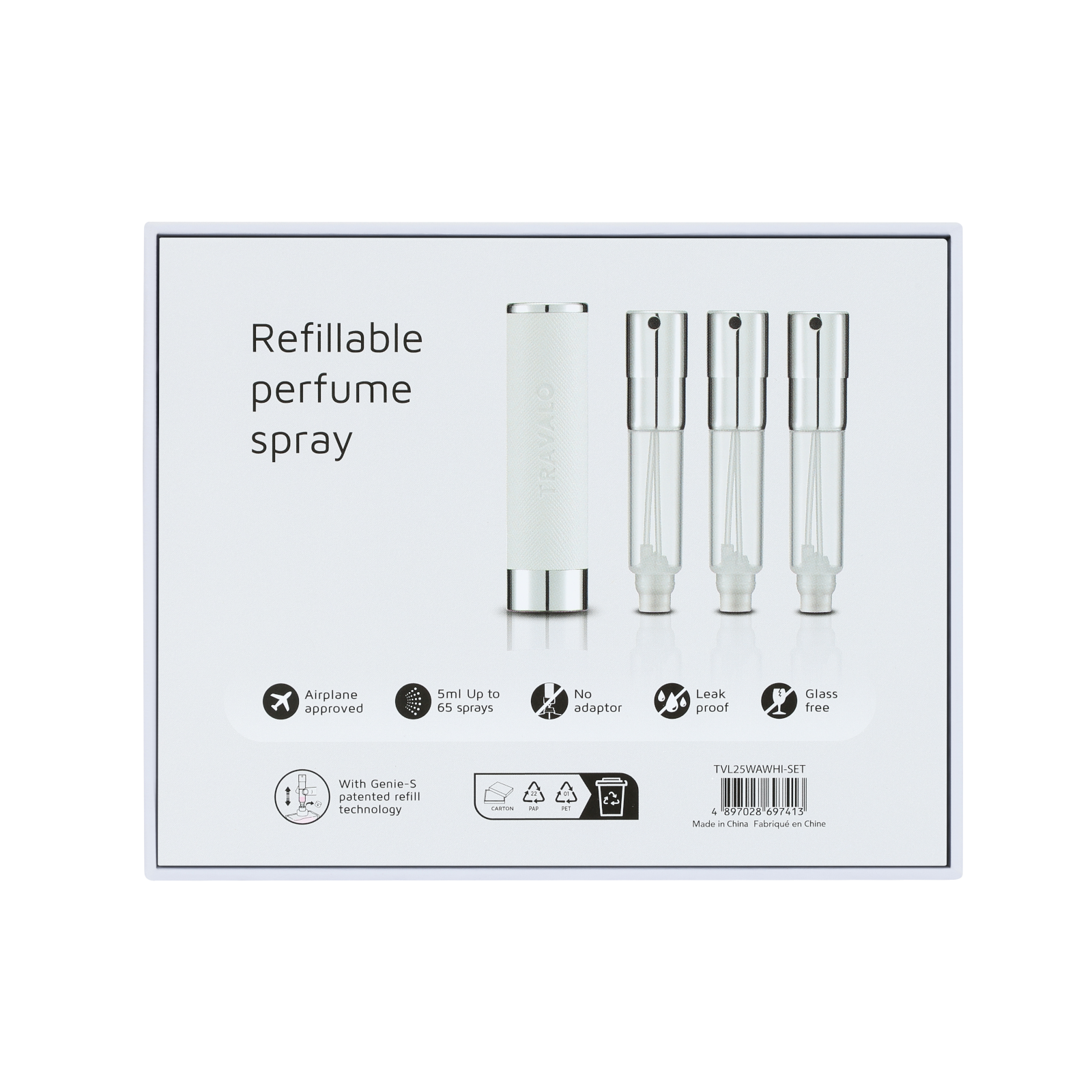 Like all Travalo, the Walzer is a twist atomiser that refills in seconds directly from any standard perfume bottle. The innovative Genie-S ‘pump to fill’ refill system transfers your fragrance perfectly without damaging exposure to air or spilling a drop.